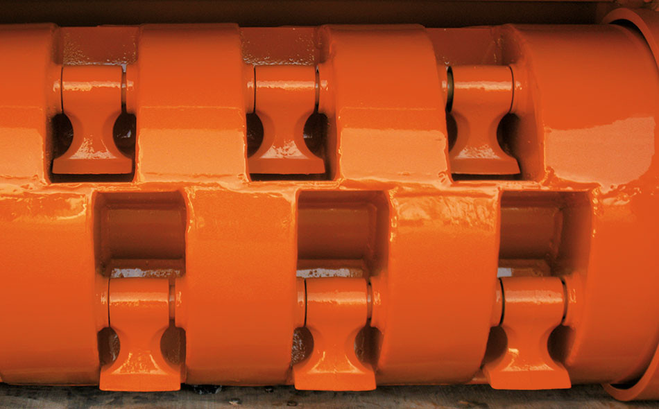Protezione anteriore con catene singole e posteriore con catene ad alta resistenza a due file.